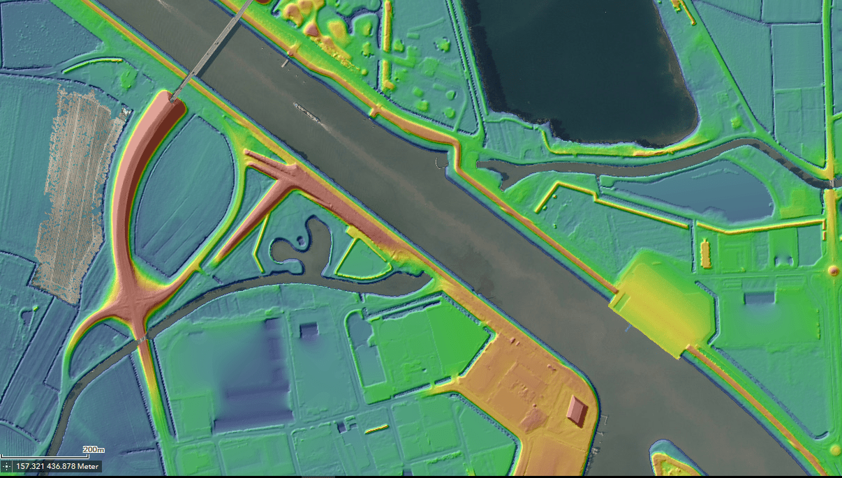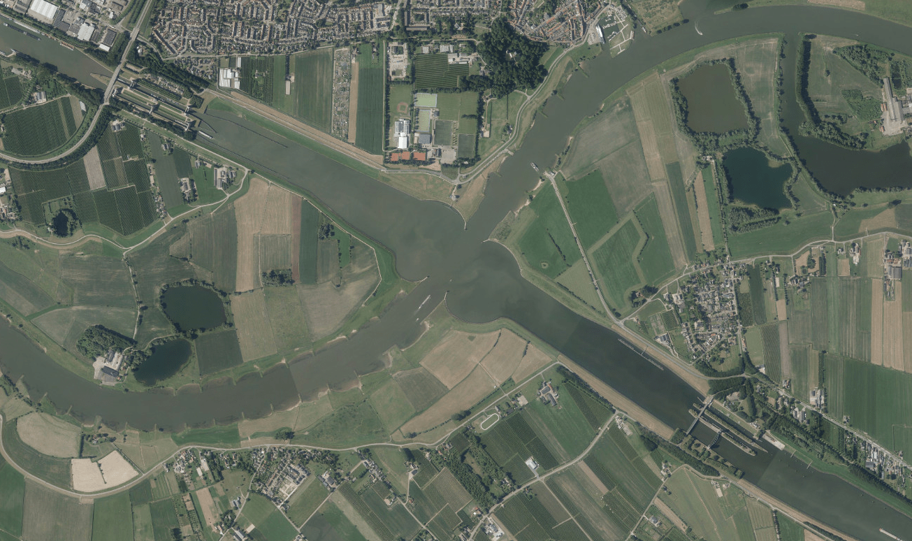 Gelijkvloers is handig als zowel de rivier als het kanaal bevaarbaar is. Want een waterklaverblad is nog niet uitgevonden. Nog een gelijkvloerse is deze waar het Amsterdam-Rijnkanaal de Rijn kruist: