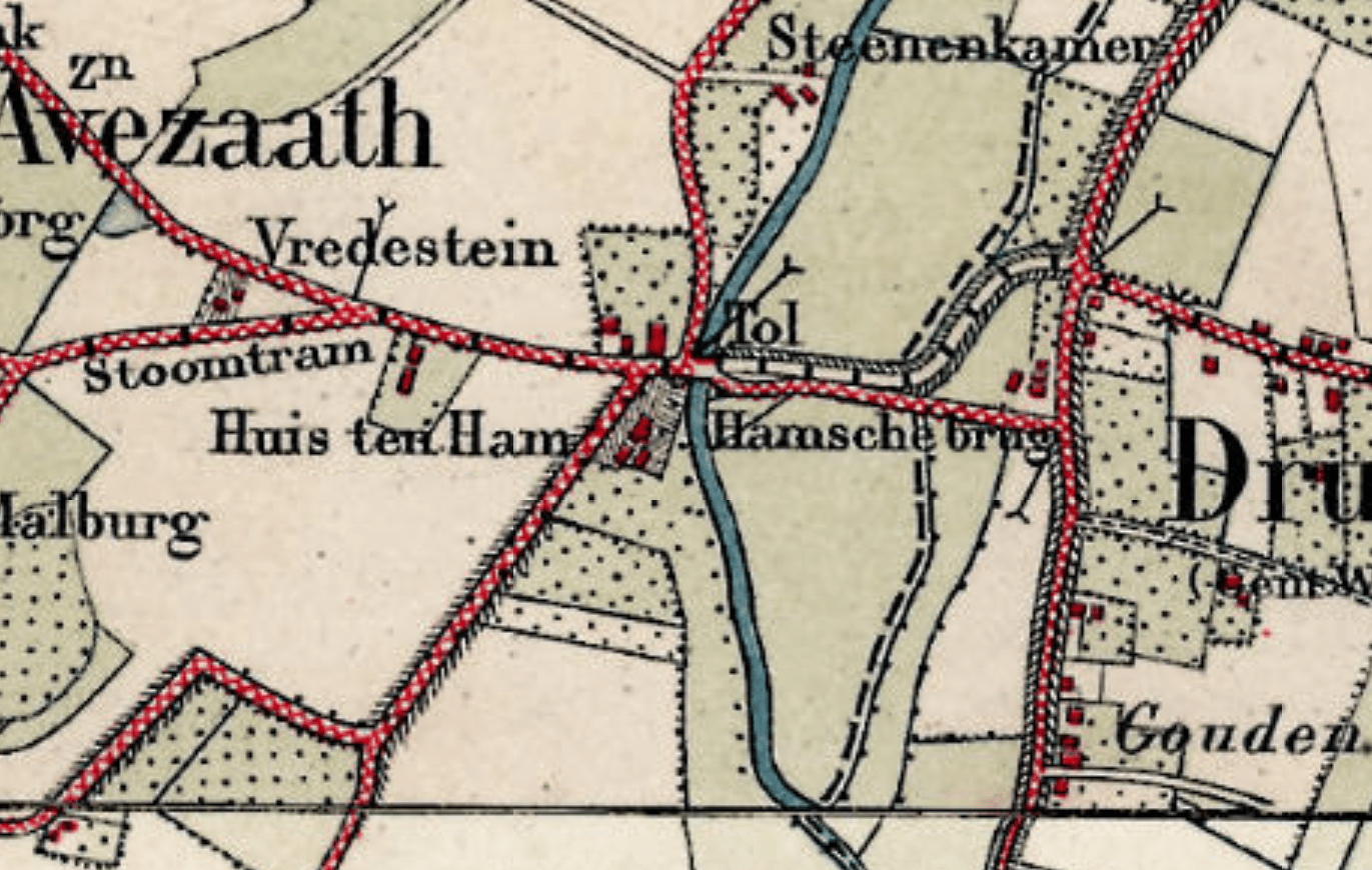 De volgende kaart, ook uit 1925, is Huis ten Ham tussen Drumpt en Avezaath. Heet dit huis zo omdat het daar nat was, of heet het zo omdat het ligt ingesloten tussen de Linge, een brug en een weg.