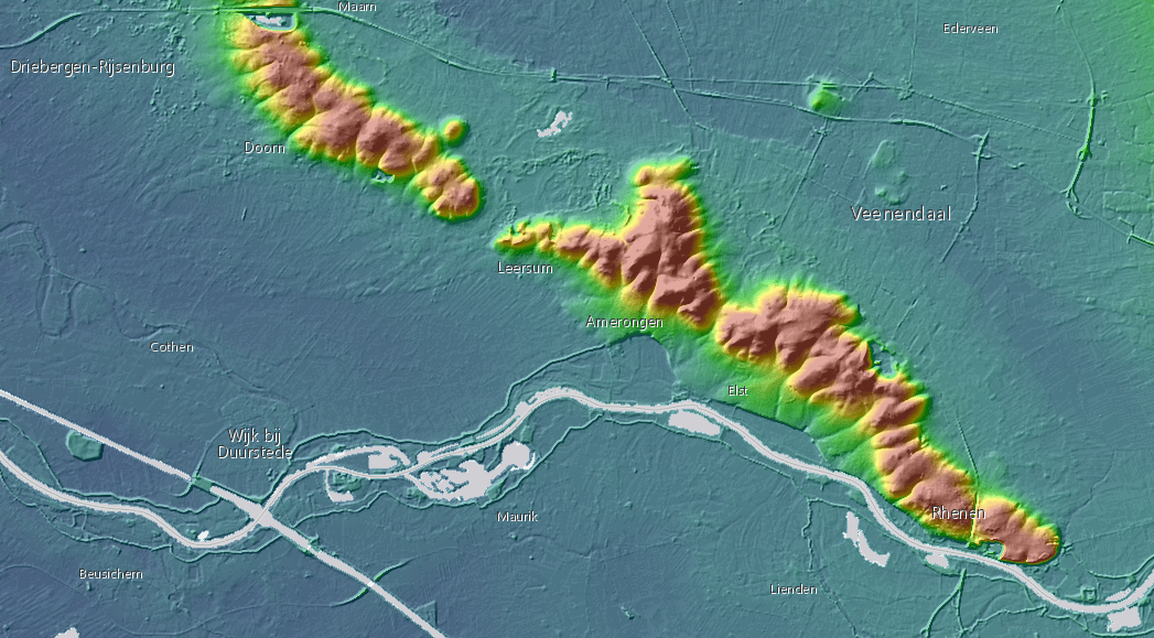 Hier meer in detail. Het gat is net ten westen van Leersum, waar de weg afslaat naar de A12. Die weg hebben ze namelijk handig door het gat gelegd, ja duh.